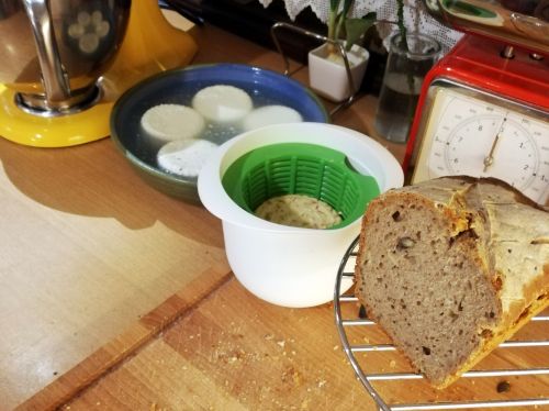Obyčejný každodenní luxus života doma... Chleba, sejra... A v ovčičárně bude brzo kozí i ovčí mléko...