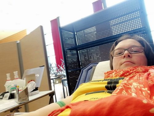 Ještě jeden dobrej skutek mám! Nechala jsem si po dlouhe době pustit žilou. Za odměnu jsem dostala Merci bomošku, kterou mi neznámí pachatelé vyzobali. Asi chodí na školení ke kosici, co mi škube z trávníku materidoušku...