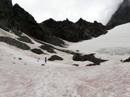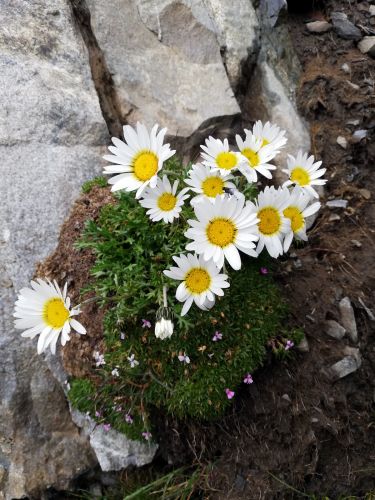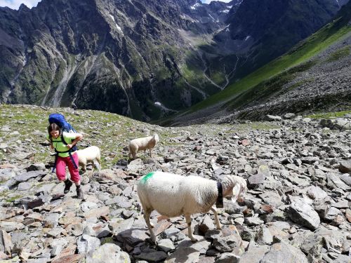 Byť byla chata docela plná korona nekorona, pamatuju si ten den snad jen dva páry, co šly v protisměru. Cestička vedla docela dlouho lánem krásně kvetoucích azalek, jak jinak, než pořád do kopce. Vzpomínali jsme na nepálské rododendronové lesy a mysleli na Nyimu. (Mají se dobře, děti mají online výuku na dálku a dvestě rodin ve vesnici dostalo rýži a olej minulý týden, jelikož přišel finanční dar od zahraničních vandráku nějakému průvodci v dědině.)Na prahu měsíční krajiny nebo chceteli v zahrádce Kaunergratu kolem 2.700m.n.m. jsme potkali dvě stáda ovčích alpinistek. Jejich módní přehlídka jistě nebyla jediným důvodem, proč jsme tentokrát ani zdaleka nedokázali zdolat trasu Verpeilhütte - Kaunergrathütte v doporučeném čase 4 hodiny a vrátili jsme se k našemu klasickém časovému schématu deklarovaný čas x2. Vyšli jsme ale brzo ráno a do večeře času dost, jak jsme dorazili, takže dobrý.