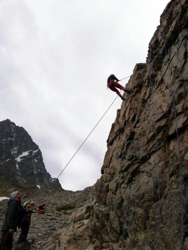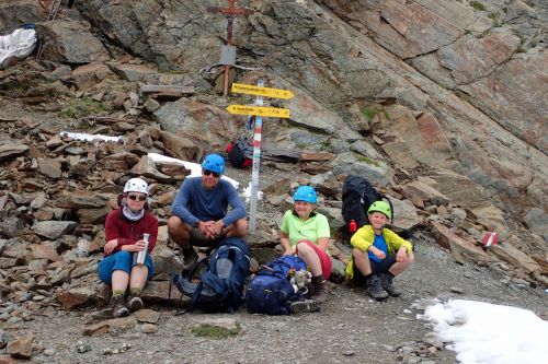 V Kurzu nás bylo devět, dost na to, abychom dostali dva trenéry. Hurá moje touha, že nebudu nikoho cizího brzdit byla vyslyšena, naše "No Risk No Fun" rodinka (tak nás označil jeden "spolužák") nafásla vtipálka Fipse, rodáka z Kaunertalu a dlouholetého horského vůdce. Přes zimu dělá instruktora lyžovaní na ledovci a na Riffelsse a v létě vtipkuje s kurzistama tady. Báječně jsme si to společně užívali celý týden a počasí bylo nakonec o chlup lepší, než předpověď...