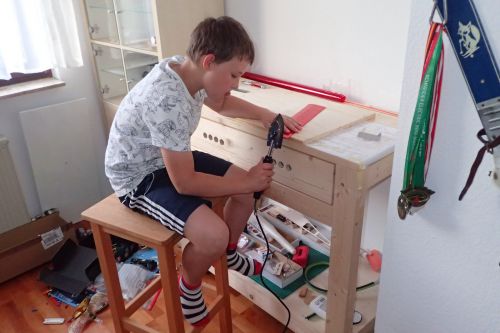 Jáchym zvládl svou bronzovou pilotní zkoušku na modelovem letadle a může lítat sám. Užil si prázdniny na Wasserkuppe, kde prý nalítal nepočítaně hodin na svahu. S tátou pak jezdili lítat na letiště po večerech a táta mu jedno české letadlo rozbil. To bylo smutku! Zavřená škola v lockdownu byla pro Jáchyma darem z nebes... Nedokázali jsme mu ale vysvětlit, že to nejsou prázdniny. Podle toho vypadala jeho pracovní morálka a výsledky.