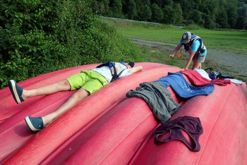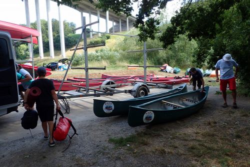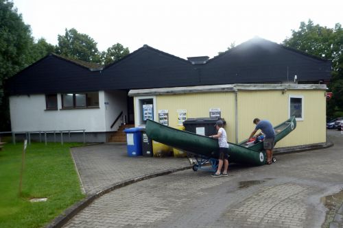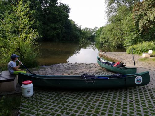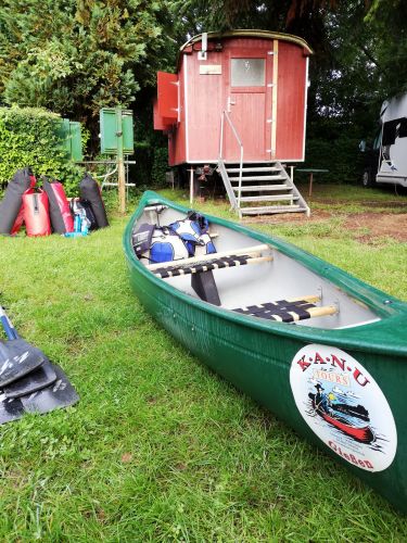 Kánoe jsme si zarezervovali u Kanutours Giessen. Pytle na věci a všechno kompletní vybavení je samozřejmostí. Plán byl zdolat 80 km dlouhý úsek Giessen - Limburg. Protože o prázdninách není žádné pohodlé vlakové spojení zpátky do Giessenu, využili jsme možnosti objednání transferu, což se ukázalo jako bezva nápad. Student, který nás vezl byl vodákem tělem i duší a dozvěděli jsme se spoustu zajímavých informací, které krásně náš zážitek zarámovaly. Naporcování nám vyšlo nepravidelné. Možností na přespání je ale více. Nedá se ovšem spát venku na divoko, jedná se o CHKO. Kempy mají širokou nabídku bydlení, takže ačkoliv jsme si pořídili další malý stan, nakonec jsme si zarezervovali bydlení s postelema a stany nechali doma. Otík se u rešerše vyřádil a v Campingplatz Wetzlar zabukoval Cirkusovou maringotku. Ta byla uplně roztomilá, včetně kuchyňky a nádobí. Večer jsme zaběhli do sámošky a nakoupili si na snídani tousty a zeleninku. Káva byla erární.