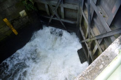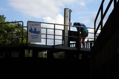 Ovšem tunel s dvojitým zdymadlem byl opět zážitek. Zadní klapky zůstaly otevřené a než jsme to zjistili povozili jsme se výtahem pěkně nahoru a dolů. O víkendu je tu narváno a v tunelu se stojí fronty
