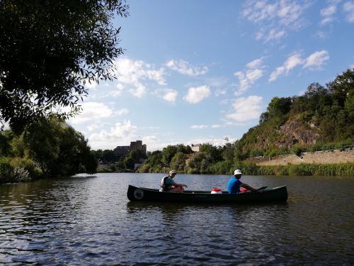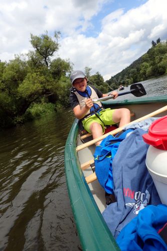 Oukej, jako autorka tohoto článku nejsem zrovna ideální. Nejsem vodák. Těch párkrát, co jsem cosi s Otíkem v Čechách sjížděla jsem seděla na háčku a bylo to tak akorát, abych měla z vodáctví respekt. Kormidlovat kánoi neumím a nemám ráda dobrodružství. Sjíždění Lahnu navrhl Jáchym a demokratické volbě většinově vyhrál. Při pocitu, že budu zodpovědná za nějaký dítě v roli kormidelníka se mi dělalo mdlo už od hlasování. Na Lahnu už jsme pluli a věděla jsem, že je to olej. Snažila jsem se uklidňovat, že to snad přežijeme ve zdraví. A dobrý. Srdce se mi rozbušilo na rozdíl od ostatních za těch 80 km několikrát, objevila jsem na těle spousty nových svalů, které jsem neznala, ale dobrý. Už to řídíme všichni a hlavně ty zdejší kánoe jsou nevyklopitelné. Příroda na Lahnu je ale nádherná. Potkávali jsme volavky, kačeny s miminama, ledňáčky, vážky a dokonce i velikou želvu. Jsem ráda, že jsme doma, ale celkově musím uznat, že taková dovolená má něco do sebe. Jedná se údajně o jedinou řeku v Německu, která má vybudovanou takhle pohodlnou infrastrukturu když už nějakou loď potkáte, jsou v ní často i malé děti. Výjimečně se prý nějaké neštěstí stane v množství lidí, které řeka (hlavně přes víkend) sveze. Kdo hledá tip na aktivní dovolenou, mohlo by to být něco pro vás.