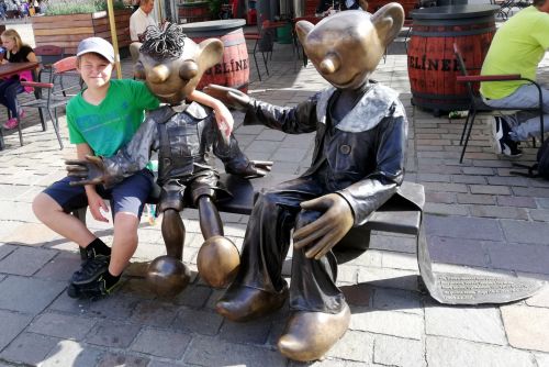 Od loňska zdobí náměstí lavička Spejbla a Hurvínka