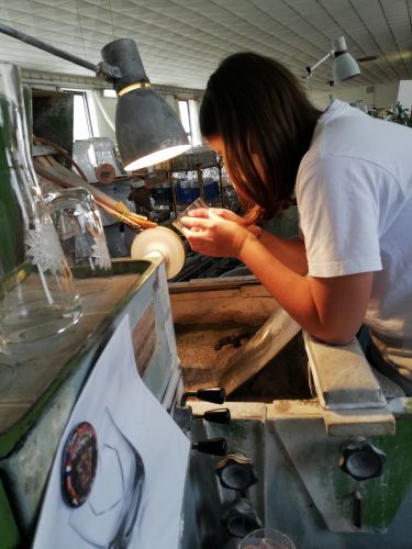 Pokud jste hračičky jako my a do všeho musíte strčit nos, můžete si na konci prohlídky nižborské sklárny vybrousit svoji skleničku a zjistíte, že trefit střed a mít každou čárku stejně dlouhou je stejně jednoduché, jako vyfouknout vázičku. Koneckonců pozorovat mistry svého řemesla je vždy zážitek.