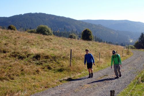 Než se pustím do povídání, chci zmínit, že jsme pocítili vděčnost za společně trávenou dovolenou se spřátelenou rodinou. Pár let zpátky se nás známí, kteří za námi jezdí do Taunusu opatrně zeptali, jestli nemáme chuť vyjet s nima o jarňákách nebo podzimňákách na vandr kamsi do hor, kde je herberk. Řekli jsme si, proč ne, a obrážíme spolu německé luhy a háje. Jak děti rostou, moc se jim do lesa nechce a už vůbec ne s rodiči. Letos jsme zaznamenali nový fenomén. Prý je pohyb v přírodě je fajn, když je u toho kromě rodičů také někdo jiný... Okay. Zaseli jsme semínko, dobrý. Ale kde ty lidi vzít. Naše lesy jsou plné turistů, ale nikde žádní náctiletí! Jsme moc rádi, že se máme... Eliška obdivně kouká na holky s batohem, co spolu putujou a v herberku se zdrží jen na jednu noc. "To by se mi taky libilo, takhle putovat s nějakou kámoškou, ale z těch mých by žádná nešla...", povzdechla si. Nevíte někdo, kam se na takové kámoše chodí? No nic, teď už ke Schwarzwaldu.
