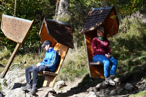 Předposlední den nás čekala relativně dlouhá cesta autem do Todtnau. Vyvezli jsme se vysoko nad údolí a procházeli se po zimním středisku prošpikovaném roztomilými a velmi vkusnými atrakcemi. Mají tu nejdelší lavičku na světě, houpačky v lese a vůbec kreativní atrakce... Když je sníh musí tu být příjemné svezení... A ty výhledy na Alpy...