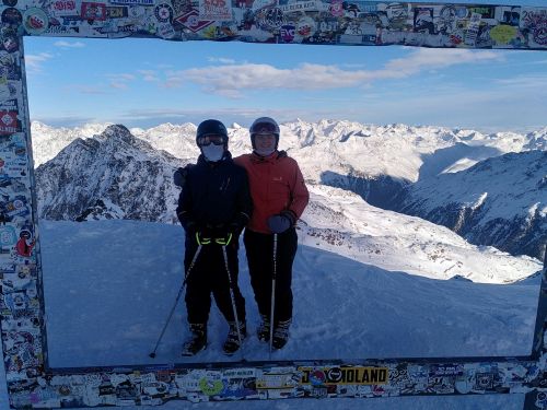 Na den s nejkrásnějším počasím jsme si vybrali navštěvu Söldenu. Krásný sníh, všude spousta lidí i přes astronomické ceny. U lanovky nás překvapila podzemní garáž zdarma a to jsme ještě nevěděli, že v ní skončíme rovnou ze sjezdovky. Lyžaři nám přišli letos ohleduplní i přesto, že byly svahy plné lidí. Ze sjezdovky se na nás na protějším kopci culil masiv