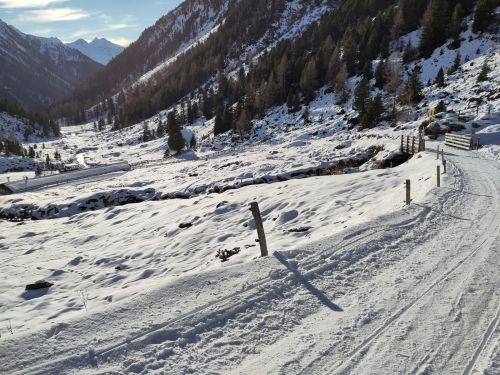 Dlouho jsme listovali nerozhodně stránkami diáře, jestli je zodpovědné vyrazit o vánočních prázdninách na hory. Zvažovali jsme, nakolik je lepší náklady za bydlení schovat do polštáře na účet za plyn a potraviny. Kelímek nejobyčejnější smetany v diskontu u nás teď stojí 1,19 €. V kalendáři to letos také moc nevycházelo... Ale nakonec přeci jen převážily misky vah fakta, že Elišku přepadl letos dvakrát nehezký kašel, že se nám tuze stýskalo a Otík narazil na rozumné ubytování v 1500 m.n.m. v Ötztalském údolí, které jsme zatím na našich bloumáních po horách nepoznali. Tu a tam se nám při putování v Pitztalu otevřel nějaký ten výhled směrem k Ötztalu a lákal nás k návštěvě.