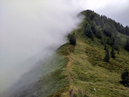 V rámci aklimatizace jsme využili poprvé v životě letní karty a vozili se lanovkou z kopce a na kopec, kde jsme se pak procházeli v dešti, sněhu, oparu, mlze, ale nakonec za odměnu i sluníčku. Porušili jsme tak u nás železné pravidlo, že se může lanovkou jet jen dolů.