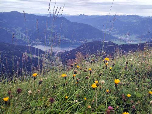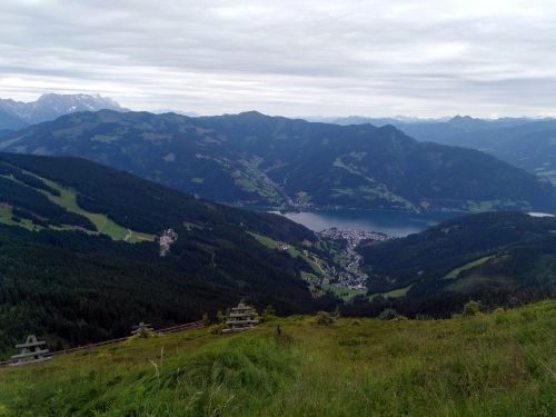 Pohled na Zell a See z cesty na Schmitten Höhe.