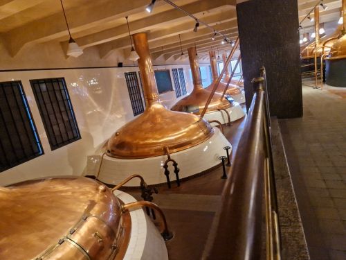 Tady začíná cesta Prazdroje. V měděných kádích a pánvích německé výroby. Bejvávaly z plzeňské škodovky.