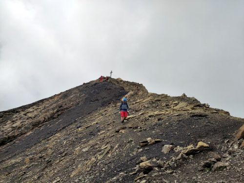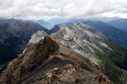 Než jsme šli na kuťe, vyprudili jsme snídaňovou službu, aby brzo vstávala a nachystala nám dlabanec před náročným dnem. Čekala nás Spiehlerweg k Memminger Hütte. 5-7 hodin, cca. 6,5 km, 962 m stoupání, 1019 m klesání, podle švýcarské obtížnosti T5. No nazdar! Věděla jsem, že mi bude dneska hodně zvonit v uších hláška horského vůdce z našeho kurzu vysokohorské turistiky: "Musíš dát svým nohám důvěru!" Jo musím, ale bohužel neumím. V osm ráno jsme přímo z Augsi 2289 m.n.m. vyrazili k vrcholu Gatschkopf 2945 m.n.m. vzdálenému pouhých 1600 m. Po dvou hodinách lezení mi Jáchym svěří, že se mu odlepuje podrážka, kouknu na hodinky, které mi místo času hlásí nadmořskou výšku: dva tisíce osm set něco. "No nazdar", to nám dneska opravdu chybělo! Bota bez podrážky! 5 kilometrů, kde nesmíš uklouznout před námi a bez boty. Nevím, jestli se ve mě ozval mateřský pud nebo pud sebezáchovy nebo všechny pudy, co člověk může mít, ale odhodlaná vydat jakékoliv množství energie jsem konstatovala, že tam to dítě bez boty nejde! Večer jsem si stáhla pdfko s trasou do mobilu, abych měla náboje do boje s Otíkovou lehkovážností. Jáchym měl radost ze zdolaného vrcholu a začal se pomalu těšit na noc v autě. Bylo mi jedno, jestli je na chatě volno. Byla jsem připravená s ním sejít do údolí. Nakonec celou rodinu Pdfko z chaty obměkčilo a hodili jsme zpátečku k mému milému překvapení všichni. Nocleh na Memminger jsme zrušili a na Augsi pro nás měli místo i když byl pátek. Dobře to dopadlo i když mě z těch tří kilometrů, co nám trvaly celý den bolely všechny svaly na nohou i ty, co nemám. A to jsem ještě netušila, že to je nic, proti tomu, co mě čeká zítra. Takhle zdevastovaná jsem ještě nikdy nebyla. Charakteristika výšlapů z knihy, co leží všem vandrákům k dispozici v chatě mluví jasně.