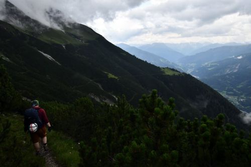 Otík se při plánování zamiloval do Augsburger Höhenweg. Chytře mi vizi předhodil po jedenácté večer, kdy se sice moje tělesná schránka pohybuje, ale mozek už spí. Jedná se úžasný, ale dlouhý a technicky náročný přechod ve třech tisících k Ansbacher Hütte v jeho, ne naší, výkonostní kategorii. Naštěstí byla ještě pod sněhem a nedala se absolvovat bez maček a cepínů. Sice jsme na to nářadí z Kaunergrathütte proškolení, ale naštětí ta kila železa nevlastníme. Na poslední chvíli, tedy padlo rozhodnutí, že zrušíme rezervaci a zůstaneme tu o den dýl, jelikož na třetí chatu Memmingerhütte můžeme jít z Augsburger rovnou po Spiehlerweg. "Z Augsi se nabízí několik možností na celodenní výlet, takže si užijeme kamzičení na lehko", jsme si říkali.
