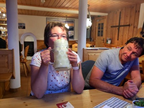 Za utrpěná příkoří jsme si po příchodu buřiny dopřáli císařský trhanec. Byl skvělý, ale Simmering Alm netopnul. Večer jsem si dopřála kulinářskou divočinu Schneemass. Chatařky se na mě potutelně dívaly a měly podezřelé komentáře. Znáte to někdo? Je to sladké a je toho moc, ale jednou za zkoušku to stojí :-).