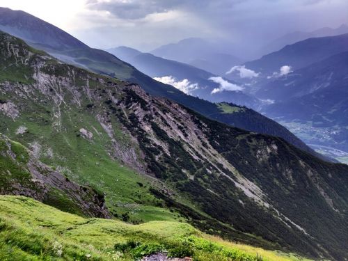 Auto jsme nechali na turistickém parkovišti v Stanz bei Landeck 800 m.n.m., k našemu překvapení bylo prázdné a štrádovali jsme si to švestkovými sady šnečím tempem okouzleni hejny motýlů směrem na Augsburger Hütte 2289 m.n.m.) Jestli je někde biodiverzita, tak tady! Posmutněla jsem, když mi O. svěřil, že nemá s sebou makroobjektiv. Každopádně netrvalo dlouho a měla jsem té vycházky plné brýle. Když nás ve dvou tisících metrech začal Otík zuřivě nahánět, že se za moment staneme svědky několika čertovských svateb najednou, začala jsem se loučit se životem, jelikož mám kovovou lahev s vodou. Lebkou se skříženýma hnátama v smskách, kterou jsem naštěstí ani nezaznamenala se mi pokoušel Otík vysvětlit, že na tu čertovskou ženitbu fakt nechcem a začal Elišce a mně pomáhat s batohem. Překvapivě to fakt pomohlo a výrazně nás to zrychlilo. Za vodopádem práskly dva blesky a byli jsme všichni na chatě, hurá. Hned jsme do sebe kopli žíznivý a polomrtví enciánovou pálenku. Že je Jachoušoj 15 nikoho nezajímalo, ani horského záchranáře ne, huhlal pořád něco o medicíně, když nám zachraňoval dovolenou kvůli Jáchoušově botě, která se rozhodla spáchat sebevraždu, ale to předbíhám...