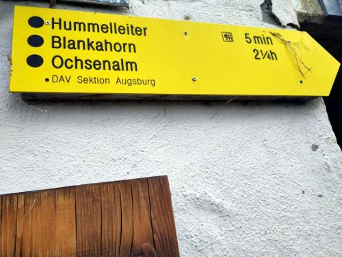 První cedule, kde stojí Augsburgerhütte. Prej dvě a půl hodiny. No, uvidíme!