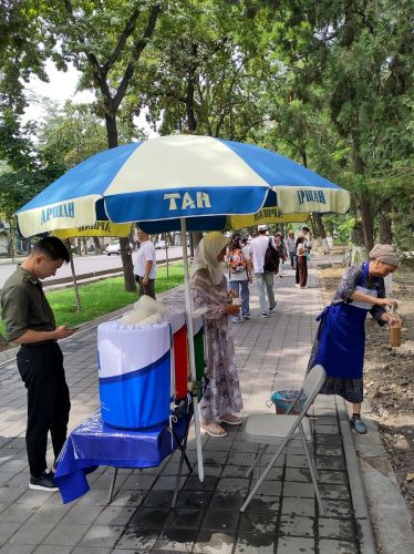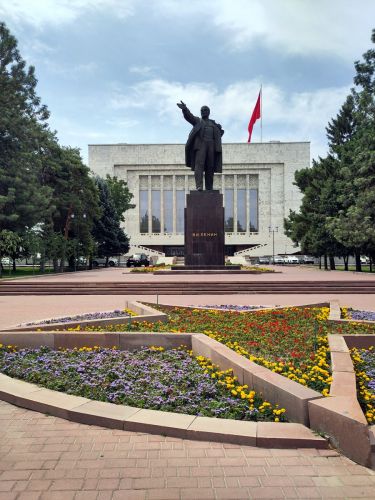 Nalodili jsme se do autobusu a vyrazili na vydatnou snídani po které následovala procházka po Biškeku. Byl to pro mě mentálně i fyzicky náročný den po probdělé noci a čtyřhodinovým posunem. Popravdě jsem si chvíli myslela, že se mi ta socha Lenina jen zdá, ale ne, všude samý srp a kladivo, sochy ruských generálů a rudé hvězdy na brutalistických stavbách. Náměstí Ala too se zaplní v srpnu při oslavách nezávislosti lidmi a všichni se prý radují a veselí. Nevím, na první pohled člověk vidí v ulicích Sovětský svaz na věčné časy...