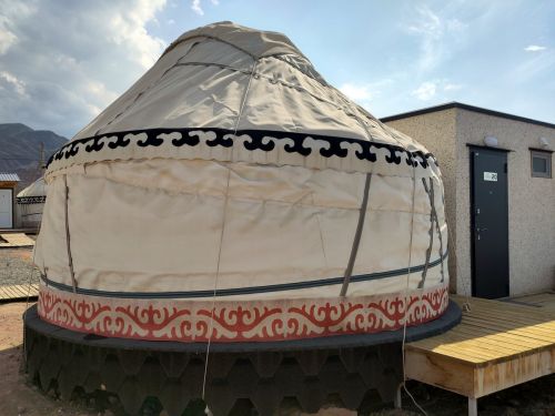 Druhý den nás čekal Highlight našeho putování: Cesta k Issyk Kul jezeru. Nádherná, částečně nedotknutá příroda nikoho. Na pobřeží, ale rostou resorty s chatkami a jurtami, jako houby po dešti a do pár let bude pobřeží lunaparkem. Je to strašidelné vidět. V Německu jsem si vypěstovala averzi k regulacím, ale jim bych ji tam teď opravdu ze srdce přála. Z Biškeku je k jezeru postavená nová železnice a buduje se dálnice. Část cesty vede po pohodlné asfaltce s odpočívadly, kde mají wifinu. Další část je zatím tankodrom nepodobný Nepálu. I jurtové městečko ve kterém jsme bydleli my a byl to nezapomenutelný zážitek, vyrostlo v roce 2023 a můžete se na něj podívat