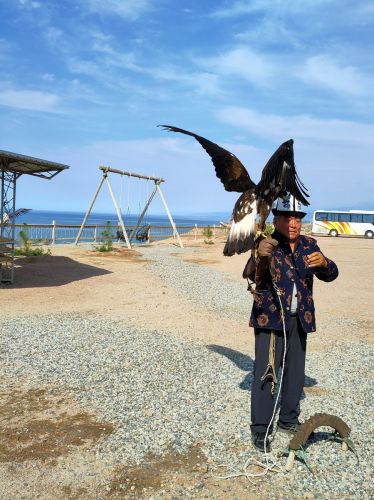 Po příjezdu nám ukázali tradiční sokolnictví. V horách loví tradičně lidem orli lišky a zajíce. Také do tajů filcování jsme mohli nahlédnout, ale nejlepší byla koupačka v jezeře, které je slané. Po večeři jsme si užili folklórní program. Na venkovní terase jsem narazila na slovenský pár, který projížděl Kyrgyzstán a Tádžikistán půjčeným autem a ráno u umyvadla v jídelně zase Češky, které spaly ve stanu. Bez pochyb jsou Čechoslováci dobrodružné duše a Kyrgyzstán je u nich oblíben.