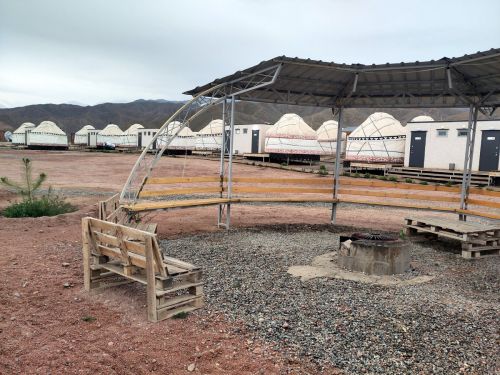 I společné ohniště je ve tvaru jurty.