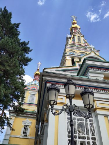 Z Biškeku vedla naše cesta klimatizovaným autobusem Hedvábnou stezkou do kazašského Almaty. K našemu překvapení jsme museli na hranicích vystoupit, posbírat všecky saky paky a vydat se k hranici pěšky. Všecko hodit na pás jako na letišti, možná ty RTG snímky vnitřností zavazadel kontroluje, těžko říct, spíš mi to přišlo, jen aby se neřeklo. Obě fronty, jak na vycestování, tak na vstup do země jsme bez problému prošli. Vzpomínala jsem na dětství a všichni jsme si chrochtali, jak je bezva Schengen.