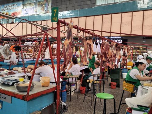 Cestou do Almaty jsme podél dálice zahlédli první a jediné stádo velbloudů. Všimla jsem si taky, že tu jsou všude kilometry trubek všech možných průměrů. Každou chvíli nás průvodkyně upozornila na těžební místo zemního plynu, které právě míjíme. Náklaďáky s auty s Číny sem proudí novodobou betonovou stezkou. I tady občas zahlédneme větrníky, solár žádný. Čína tu investuje do infrastruktury stejně jako v Nepálu.