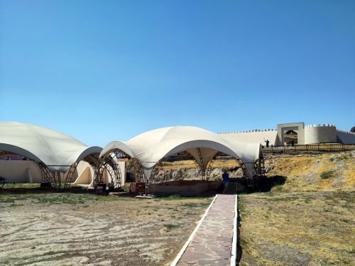 V Šimkentu trávíme jedno odpoledne, v parku Abai se nám tají dech nach tamnějšími padlými v druhé světové válce. Nekončící seznamy mi připomínají Osvětim, pocit, že se to za rohem zase děje a hned na několika místech vyvolává pocity úzkosti. S úlevou naskakujeme do nachlazeného autobusu a vyrážíme na místo, kde cítíme poprvé skutečnou historii. Šimkentské hradiště bylo kdysi centrem a v roce 2007 se do něj vrhli archeologové, kteří našli předměty i 2200 let staré. Tak dlouhá je historie místa, které se daří udržet a nezastavět novou výstavbou. V 19. Století se jednalo o důležitou vojenskou pevnost, která ztratila svůj význam s příchodem Sovětů. Večeřeli jsme v restauraci Grand Praga, kde bylo pivo točené a moc dobré. Pohybujeme se po muslimských zemích, tak to není samozřejmost.