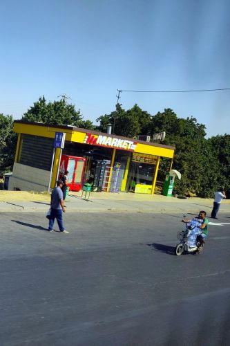 Ve městě nebo na odpočívadle dálnice narazíme na pultové prodejny. Jelikož se ale pohybujeme po muslimských zemích pivo v nich nehledejte. Zato kohoutek s umyvadlem je skoro všude!