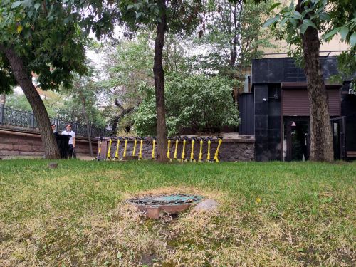 Ve zbrusu novém jurtovém kempu se třídí, děsně by mě zajímalo, co se s tím pak děje dál.