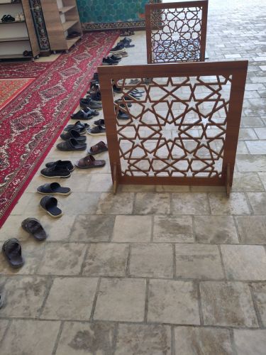 Důležitá je i modlidba! Každý správný muslim by se měl pomodlit pětkrát denně. Trochu mi ta modlitba pripomíná pozdtav slunci. Ve stáří jsou ti pilní pak odměněni zdravými koleny! Také je třeba dbát na to, kam dáte v místnosti postel. Spící by měl ideálně ležet směrem k Mece.
