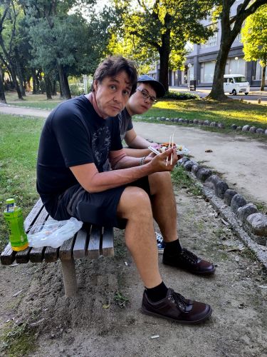 Po následné procházce parkem a okolo známé ruiny tehdejšího obchodního centra (od architekta Jana Letzla) jsme zakotvili v nějaké restauraci, nabízející místní specialitu Okonomiyaki. Doufám, že jsem to, jakožto naprostý gurmánský barbar uplně nepopletl. A pokud jó, tak pal čert, stejně to nikdo nepozná :-) Jen co jsme si těch nudlí na milion způsobů opět a zase dosyta užili, už jsme se museli dát na strategický ústup - šup vyzvednout batohy v hotelu (pan recepční jen skuhral něco o heavy a big, když ty bágly z kamrlíku tahal...), vyčůrat a hurá starou roztomilou hranatou tramvajkou na nádraží, kde už na nás čekal šinkansen pro přesun na Kjúšú.