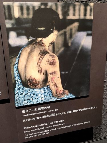 Do toho nejsterilnějšího hotelu z těch nejvíc sterilních (řetězec LiVEMAX) jsme dorazili relativně pozdě večer, takže nám ani moc nevadilo, že v rodinném pokoji se dvěmi na sebe naraženými dvojpostelemi kromě těch dvou dvojpostelí není vubec nic, natož nějaké to místo na zavazadla či alespon metr-dva čtvereční životního prostoru. Navíc jsme hned po příjezdu vyvinuli strategický plán, z hotelu zmizet co nejdřív a vydat se do Muzea míru už na půl osmou ranní, takže jsme se navzájem ani nestihli pošlapat. Zní to asi malinko šíleně - vyrazit do muzea na 7:30 - ale byl to jediný časový slot, který ještě šel zarezervovat. To nám nicméně umožnilo si muzeum, jež prýští emocemi všemi směry, vychutnat se vším všudy a zachránilo nás to před turistickým infernem, které se během dopoledne rozvinulo naplno. Lze jen doporučit.
