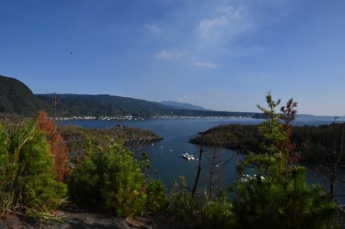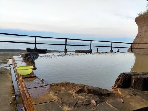 Veřejná tlapková termální lázeň s výhledem na záliv a Kagošimu