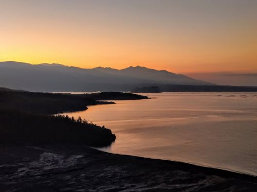 Fotografické cvičení: Jak narvat ten oceán do jednoho obrázku s tou čoudící sopkou. Ta atmoška z toho vůůůůbec netryská