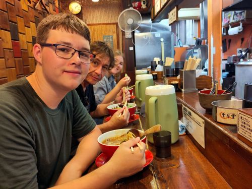 Než jsme skočili do šinkansenu do Ósaky, čekal nás ještě Kagošima rámen k obědu a nakupování tradiční Kagošimské speciality sušené ryby Katsuobuši, kterou potřebuje Jáchym stejně jako sojovku a miso na jeho sobotní vařící dýchánky. Byť jsme nakupovali v nádražním obchůdku, pochvaloval si Jáchym, že tohle extraklasse Ware stojí zlomek ceny, co u nás.