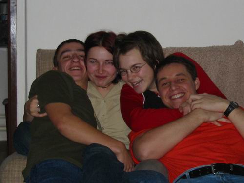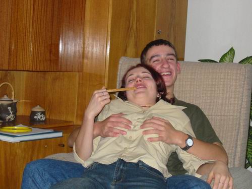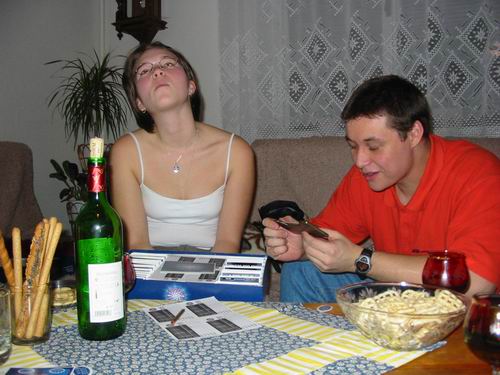 Silvestr jsme strávili v útulném příbytku mé nejlepší kamarádky Káti spolu s jejím Liborkem a mým Tlapíkem :) Našemu večeru vévodil vánoční dárek Fondue od brášky. Zahráli jsme si na Švýcary, milionáře, "závodníky", lovce, žháře i hasiče. Popíjeli jsme víno, chodili čůrat, zkrátka jsme se chovali kultivovaně a slušně.