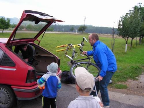Tak nějak to vypadalo, když se začali sjíždět první závodníci - frrr ke startu pěkně autíčkem, šup s koly ven, závod je dlouhý, silami se musí šetřit! :)