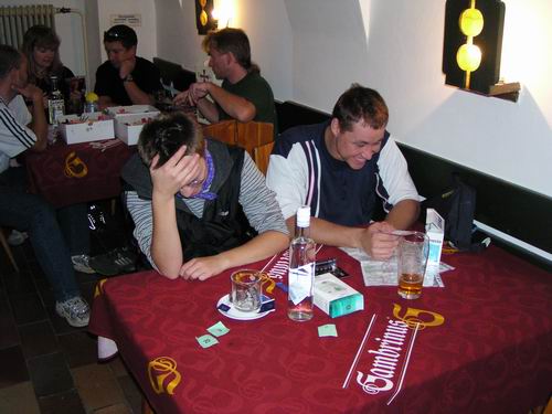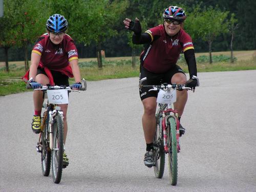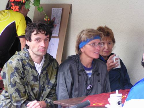Po pětihodinové výjížďce (či spíše teroru) jsme se doplahočili zpět k Novotnům, kde jsme se zahřáli kvalitně vychlazeným pivkem a výborně napapkali - řízeček a sýreček nám navrátili cestou vytrousenou energii. Nervozita pomalu stoupala, slavnostní vyhlášení výsledků se blížilo... Po chvilce napětí bylo vše jasné. Zvítězili daňoví poradci a my otlapkovaní bikeři jsme se mohli těšit z vynikajícího 8. místa. Fakt, že jsme nebyli poslední, naši obrovskou radost ještě znásobil. Závodníci na medailových pozicích dostali dort (který záhy snědli závodníci na nemedailových pozicích, aby jim to náhodou nebylo líto) a měli právo přednostního výběru z cen, které do "banku" přinesli všichni zúčastnění. Následovala tombola a další rozdávání cen humorem sršícím doktorem Šrámkem. Domů jsme si odnesli skvělé odměny (zvláště prostředek proti průjmu potěšil :), ale co se cení ještě víc, jsou super zážitky a více či méně zhuntované tělo. A příští rok jedeme znovu! Co vy?