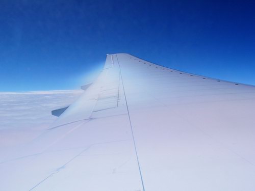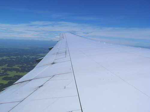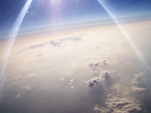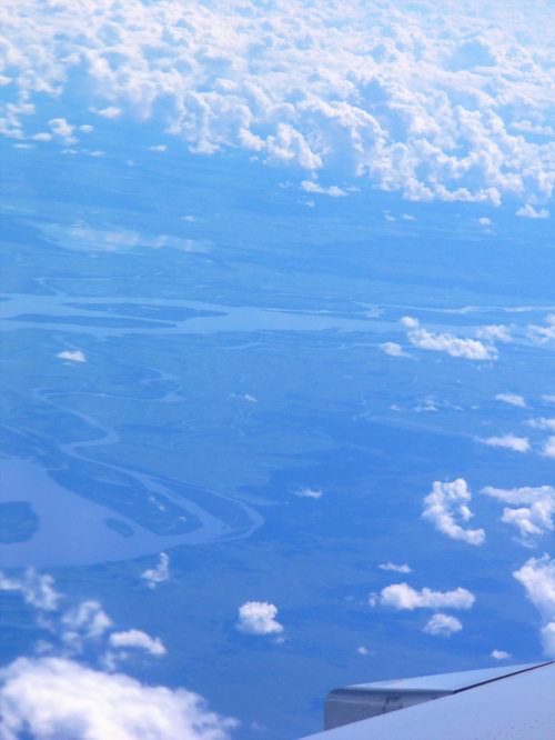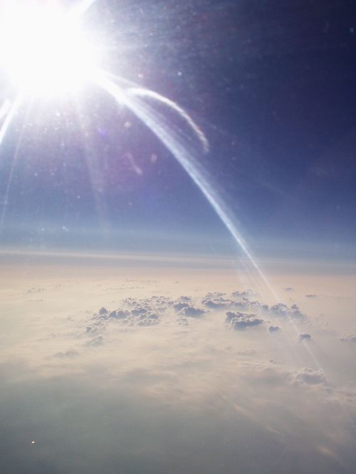 Přes všechna ujištění srandovního ruzyňského operátora u check-inu, že nám zajistí místo u okna, a jenž vypadal, že se ještě nestih' vrátit z tripu, jsme po celou cestu z Milána do Tokia mohli pozorovat tak akorát temeno hlavy uťáplého varšavského fotografa s jeho analogovým Canonem EOS-300V na oku. Zato na zpáteční cestě z Tokia jsem již nechtěl nechat nic náhodě a stepoval ráno u check-inu už půl hodiny před otevíračkou, díky čemuž jsem vyfasoval krásné místečko u okýnka... s malinkou vadou na kráse - přesně uprostřed nad křídlem...