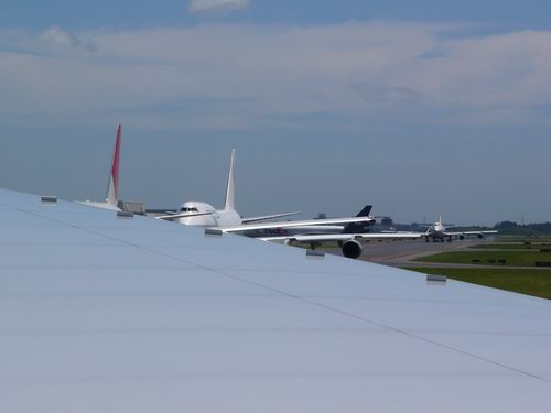 Let z Prahy do Tokia zajišťovali zelení Italové (Alitalia) ve spolupráci s ČSA, tudíž s mezipřistáním v Miláně na cestě tam a v Římě na cestě zpět. Kvalitou služeb nás Alitalia nijak neoslnila, žádné sympatické letušky (jako u ČSA nebo Lufthansy) se nekonaly, pivo nám nosili buď prošedivělí či rovnou plešatí Taliáni nebo jedna dvoumetrová žirafa :) Ani ohledně letového parku Alitalie jsem nadšením rozhodne nesršel, vzhledem k 12hodinovému letu jsem se těšil na nějaký nový Airbus 340, místo toho nás však vezl již kapánek olétaný B-777-200 (soudě alespoň podle toho, že tam nic nefungovalo. No, nakonec je to pořád lepší než B-767, s nimiž Alitalia dlouhé trasy lítá taky. Z Prahy do Itálie a zpět nasadily ČSA své staré kobylky B-737 série 400 (co jiného, když ani nic lepšího ve své flotile nemají). Když už jsem nakousl ty ČSA, jsem zvědav, jestli v podzimním tendru na nová střednětraťová éra zvítězí invence a ČSA objedná konečně moderní malé Airbusy 320 nebo zůstane u kniplových B-737 (budiž útěchou, že by šlo o "new generation" sérii 800).