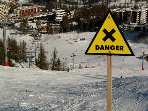 POZOR! Vstup pouze na vlastní nebezpečí, ledové plotny, velké muldy, hrozí možnost pádu ze židle!