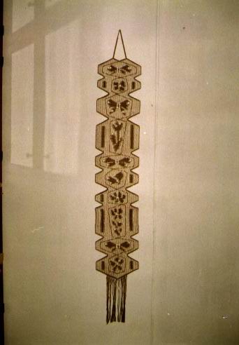 Tuto krajku navrhl akademický malíř pan Richter, patří mezi má největší dílka. Je veliká 126x21 cm a visí na zdi v obývacím pokoji.