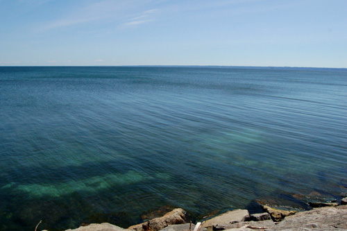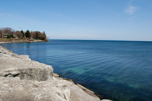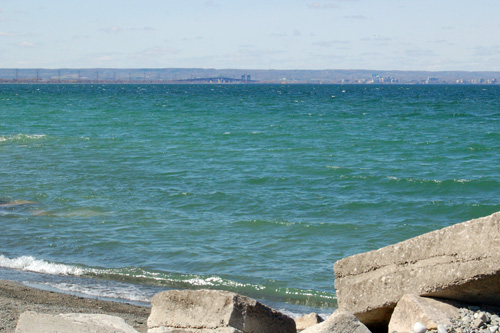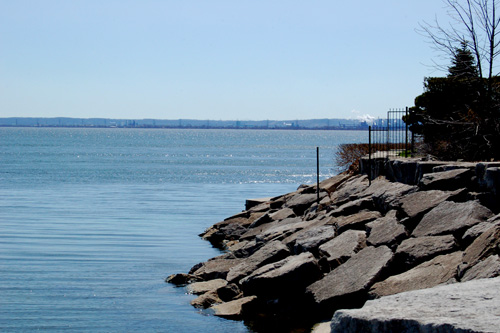 Zastávka v Burlingtonu (cca 60 km za Torontem). Tam někam na levém cípu pobřeí na horizontu leí Niagara On The Lake, nae skoro konečná.