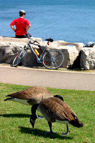 Jeliko uíváním bicyklu ztrácíte monost konverzace na téma ceny benzínu, není kolo za prostředek určený k přepravě veobecně povaováno. O to překvapivějí bylo zjitení, e sí stezek, které jsou vyhrazeny cyklistům, je v Torontu poměrně sluná. Navíc se často jedná o skutečné cyklostezky, tj. asfaltové chodníky, na které je vjezd čímkoli více-ne-dvoukolovým znemoněn. To není jako v Praze, kdy se můete spolehnout, e vás v centru u nejblií cedule s číslem cyklostezky skřípne projídějící autobus na obrubník a hned nato vás taxík ohodí vodou z kalue z kamióny vyjetých kolejí. Protoe vak nejsou ony cyklostezky stezkami pouze pro cyklisty, musíte se vyhýbat občasným běcům, psím venčitelum a v neposlední řadě i zvlátnímu druhu sportovců - civilistů pochůzkářů. To jsou lidi, kteří jdou. Ale nejdou jen tak nějak. Jdou a lomcují přitom rukama, jakoby zrovna běeli stovku na čas, jsou ověeni hudebními přehrávači veho druhu a tváří se, e kadou chvíli překonají světový rekord v maximálním čase, který je jetě mono strávit na cestě z bodu A do bodu B, ani by to bylo povaováno za stání. Natestí od nich vzhledem k jejich statičnosti nehrozí větí nebezpečí. Pokud vám teda nedaji některou ze svých lomcujících rukou do huby.