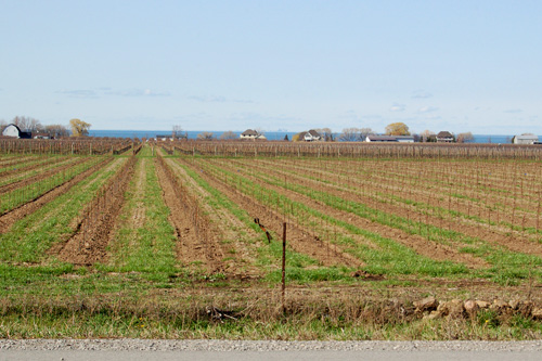 Vinná oblast Vineland (mezi Grimsby a St. Catherine) vás vítá , jezte a pijte, co hrdlo ráčí. Na obzoru mezi domy lze opět spatřiti downtown Toronta, tentokráte je nám blíe, protoe jsme od Toronta dále, logické, ne?