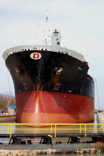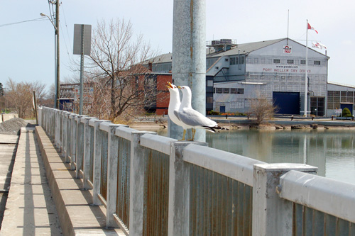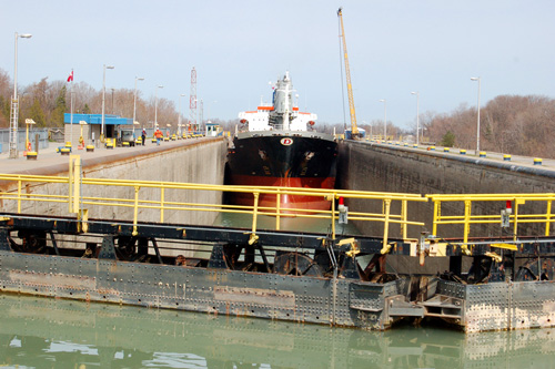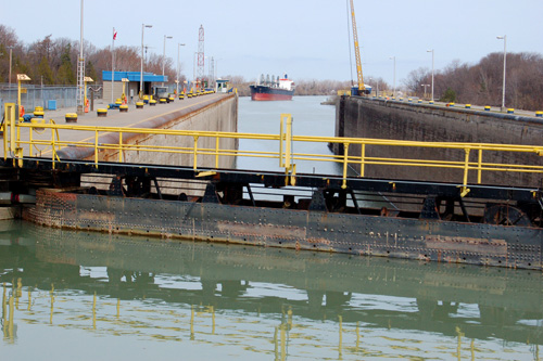 V neděli nám ji zbývalo dojet na vodopády, které nebyly vzdáleny více ne cca 30 kilometrů přímou trasou. To bychom ale přili o spoustu pokoukání, tudí jsme nabrali směr do města St. Catherine. Město jako takové je zvlátní pouze tím, e není ničím zvlátní, kousek za ním se vak nachází kanál Welland, který spojuje Ontario se skupinou Velkých severoamerických jezer. Na tomto několik málo desítek dlouhém úseku musejí lodě vyplhat přes 150 metrů převýení, co jsou schopny pouze za pomoci kaskády zdymadel. Jeliko se ale nejedná o ádné prcky (lodě bývají obvykle dlouhé přes 200 a iroké a 25 metrů), musejí být ona zdymadla přeci jen troku vetí, ne na které jsme my od Olzy zvyklí. Nám se jednu takovou bárku projídející zdymadlem podařilo odchytit a zdokumentovat.