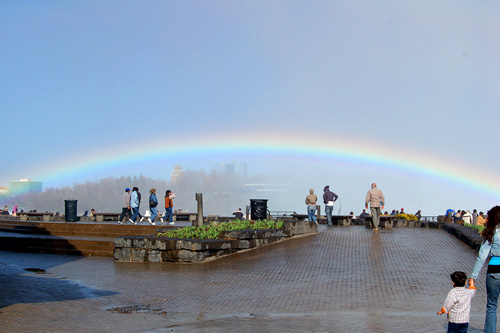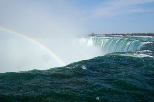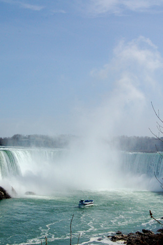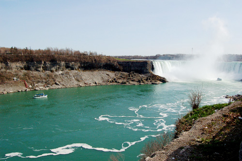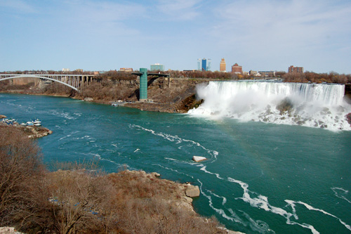 A jsme v túristickém ráji Niagara Falls. Nalevo americký pádek vody...