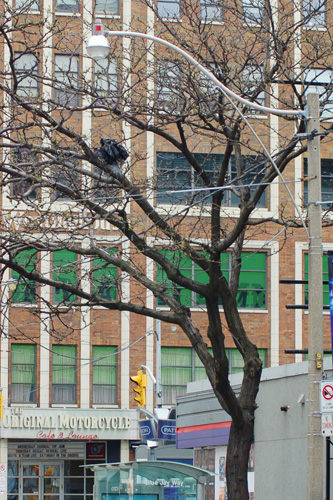 Důkaz, že i v centru Toronta je plno přírody. Mnoha listy ten strom sice neoplývá, ale zato nepostrádá nezbytný igelitový pytel napíchnutý na větvi!